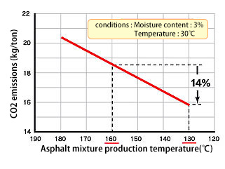 3. Ensuring quality: Workability and compactibility are improved. Also, the workability is the same as normal even when the temperature of the mixture drops, thus extending the time available for paving and the distance over which the asphalt mixture can be transported.