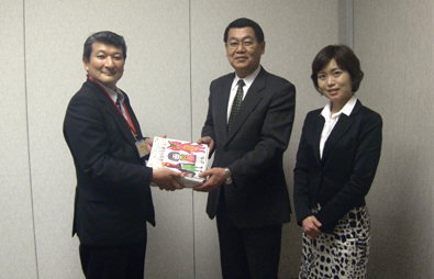 昭和女子大学附属昭和小学校 小泉清裕校長(中央)、青山りな先生(右)と当社関東第一支店 高橋営業部長(左)