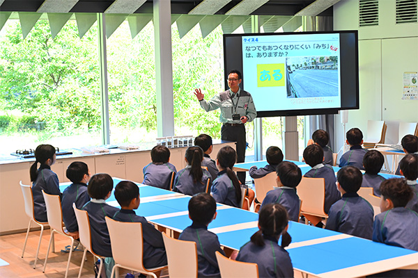 当社は「『みち』ってなに?」と題し、道路の歴史や舗装の種類について、様々な実験や体験を交えながら学んでもらいました。私たちの生活に身近な道路について興味をもってもらえたようです。このような機会を通して、「道づくり」の仕事に関心をもってくれることを期待します。今後も子どもたちの将来を応援する社会貢献活動を進めてまいります。