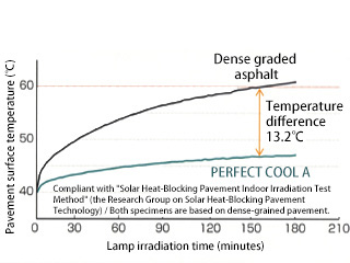 - Inhibiting increases in temperature: NIPPO’s proprietary solar heat-blocking technology inhibits increases in the temperature of the road surface by at least 10°C.