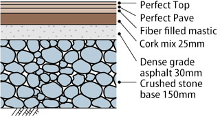 With a focus on the cushioning and shock-absorbing properties of cork, this semi-hard court uses a special paving material containing cork (Cork Mix) for the base asphalt concrete, and the acrylic paint for surface finish. This all-weather semi-hard court incorporates the pliability of natural materials and is cheap to maintain.