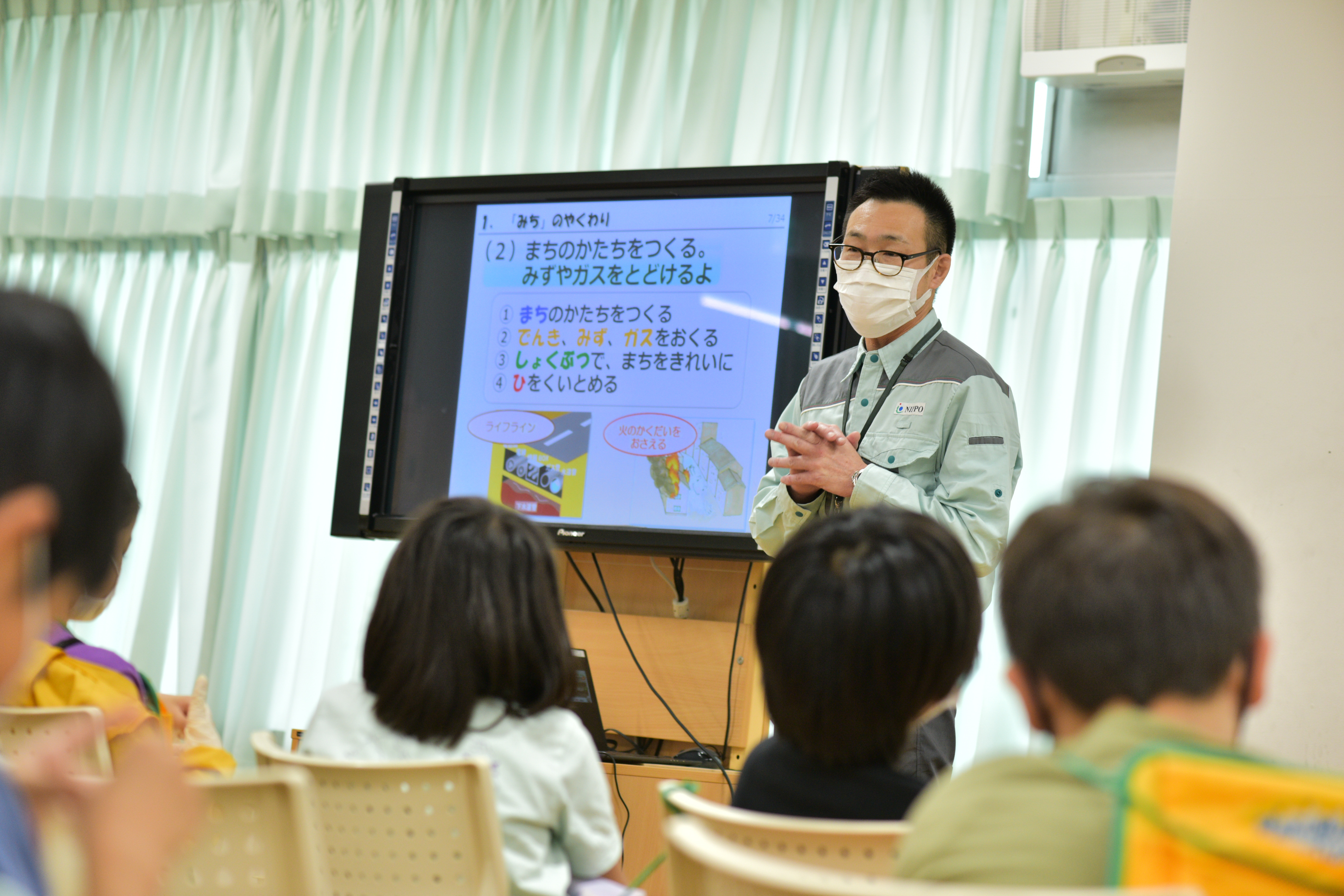 キャリアパスポートデーは、企業が出前授業を行うイベントで、子どもたちが将来、社会的商業的に自立し、社会の中で自分たちの役割を果たしながら、自分らしい生き方を実現するため、社会や職業に関わるさまざまな現場を体験してもらう場として、2019年より毎年開催されています。当社は今年で3回目の参加となり、4年生の児童38名に授業を行いました。