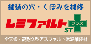 ホームセンターなどで好評販売中のご家庭用アスファルト「ホームペーブ」「レミファルトST+(プラス)」で、ご自分でもお手軽に舗装や補修ができます。