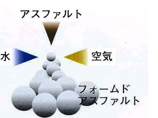 ストレートアスファルトを泡状にしたフォームドアスファルトを、既設アスコン、既設路盤材および少量のセメントと路上で混合して、新しい舗装の路盤として再生する工法です。打換え工法やアスファルト乳剤を用いる再生路盤工法より経済的な補修工法です。